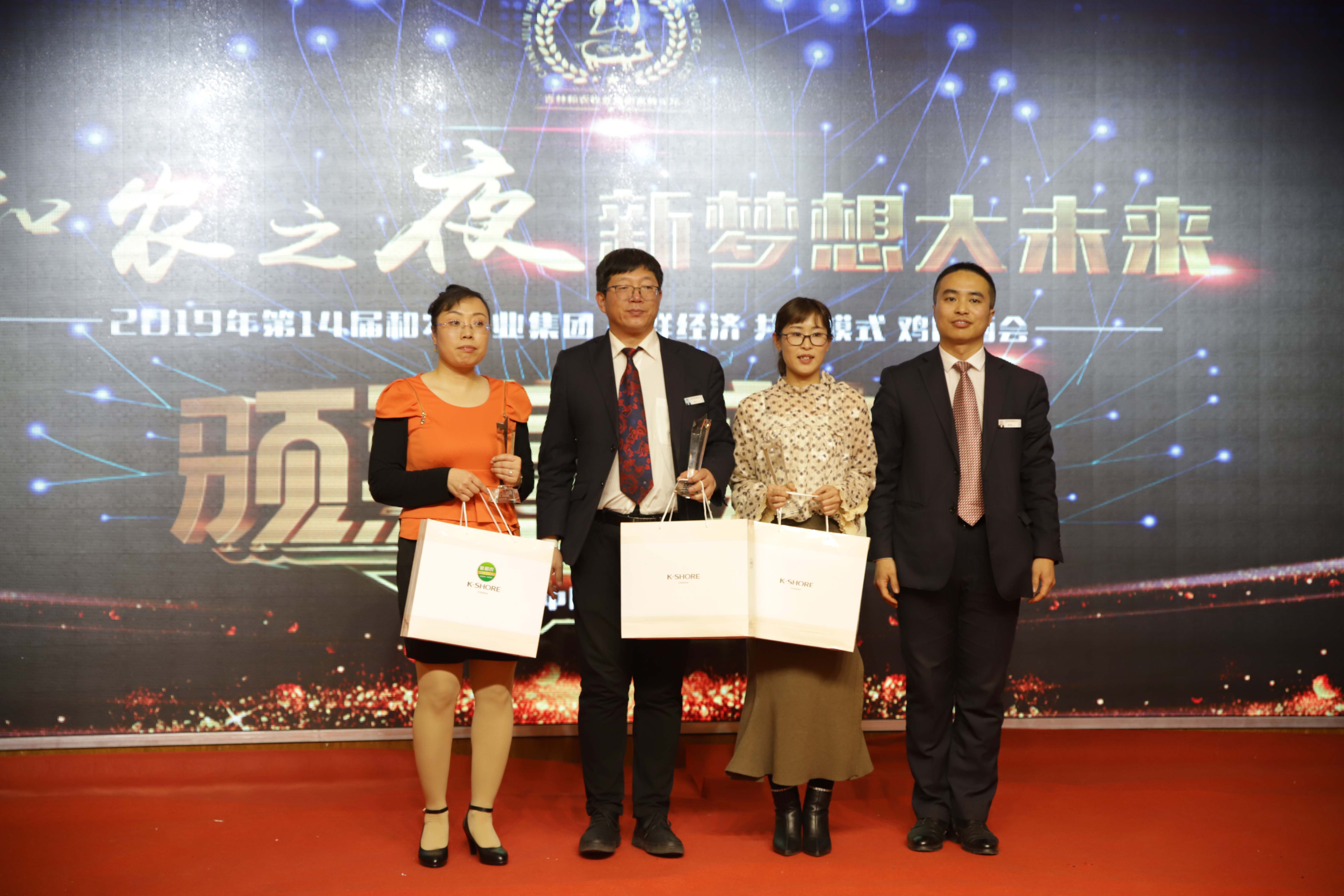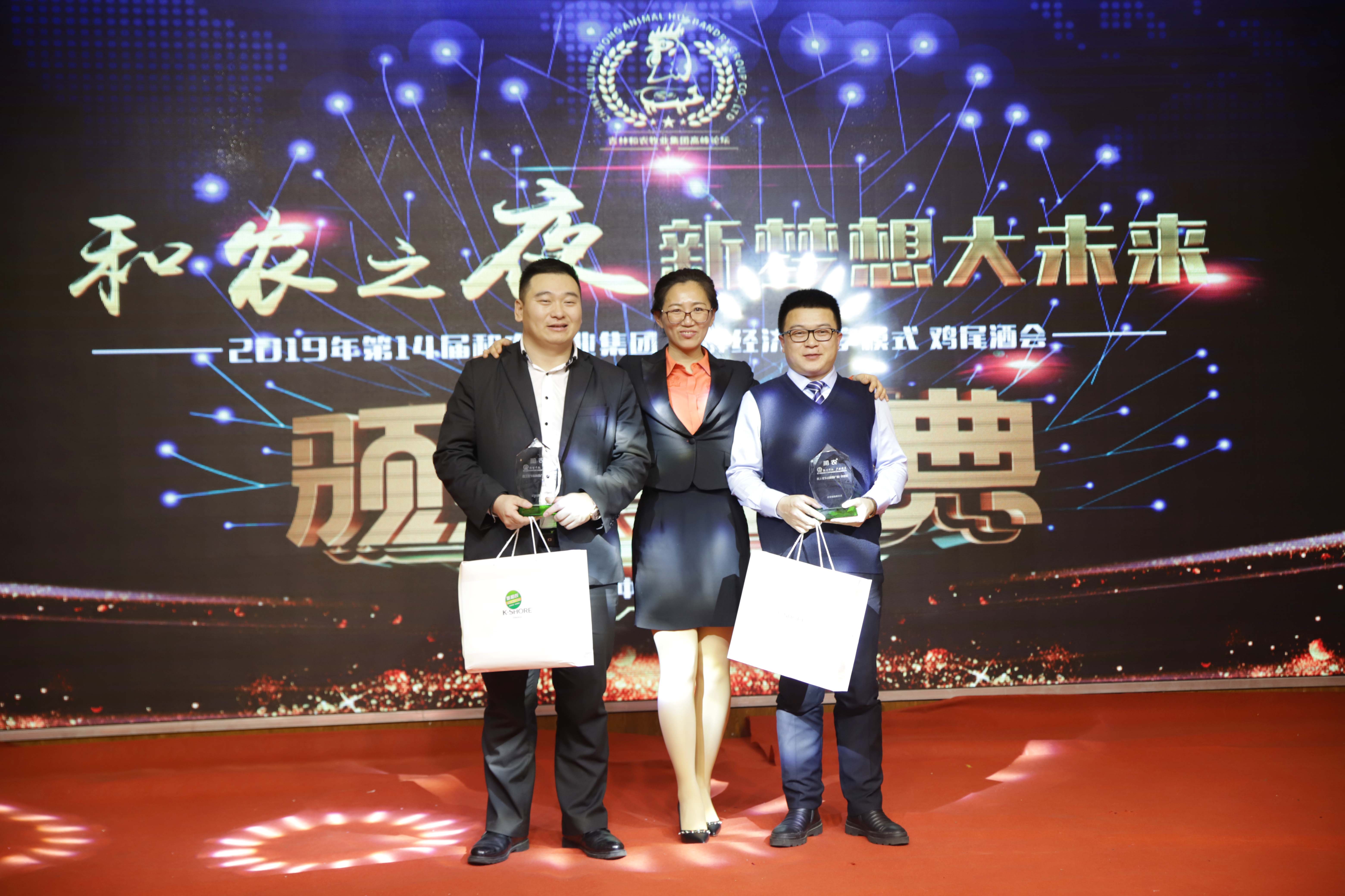 十大金牌營銷員:最高雞預混銷量獎 孫宇、趙宏宇;雞全價銷量獎 王雪松、王善軍;豬銷量獎 曹凡、曹立秋;玉米銷售獎 侯中亮;合同簽單獎 薛長喜;客戶開發(fā)獎 郝茜;客戶維護獎 孟慶博;客戶服務獎 李印成